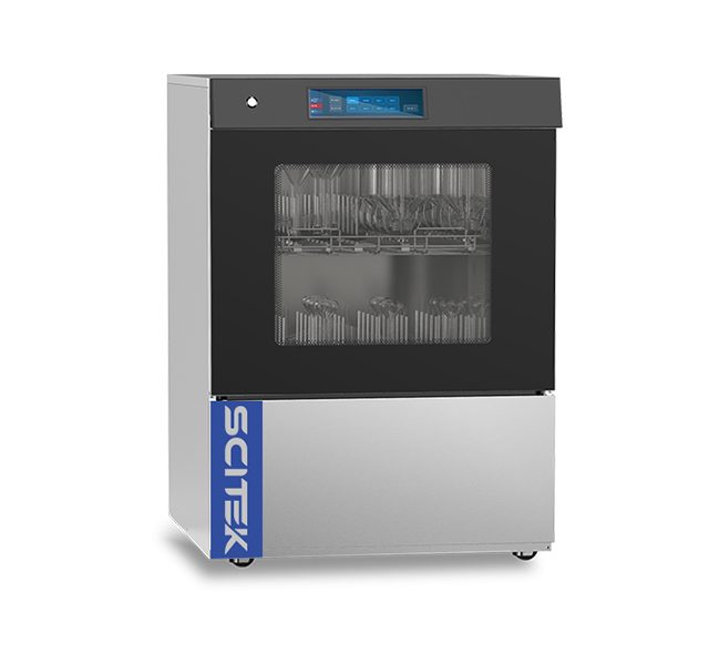 Dirancang untuk cara operasional yang mudah dan fleksibel, mesin pencuci gelas laboratorium.