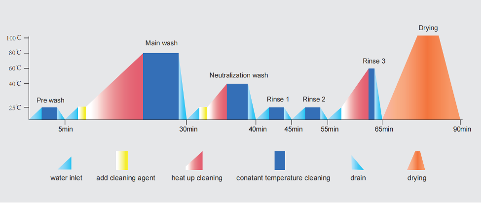Program pembersihan dan parameter mesin pencuci peralatan gelas laboratorium: